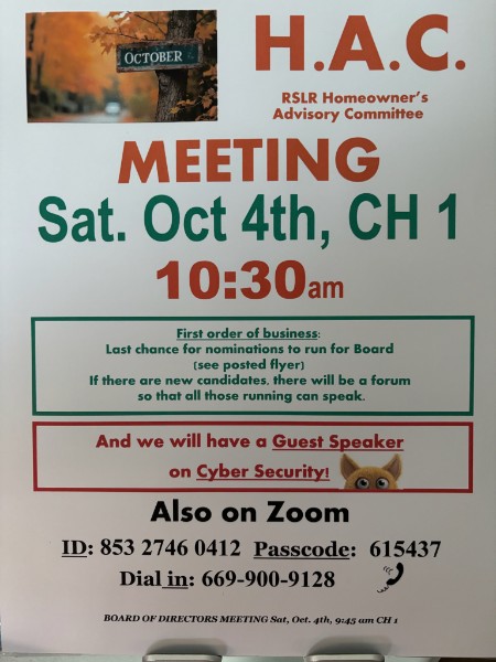 In-Person at CLUBHOUSE 1 - or - Dial in # 669-900-9128 - or - ZOOM